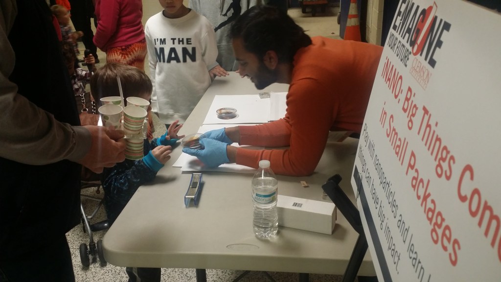 CU-Nanobio lab actively participates in the STEAM and EMAGINE programs at Clemson in addition to hosting some semi-annual outreach events on nanoscience and bio-applications at local high schools and the Roper Mountain Science Center (RMSC), Greenville, SC.