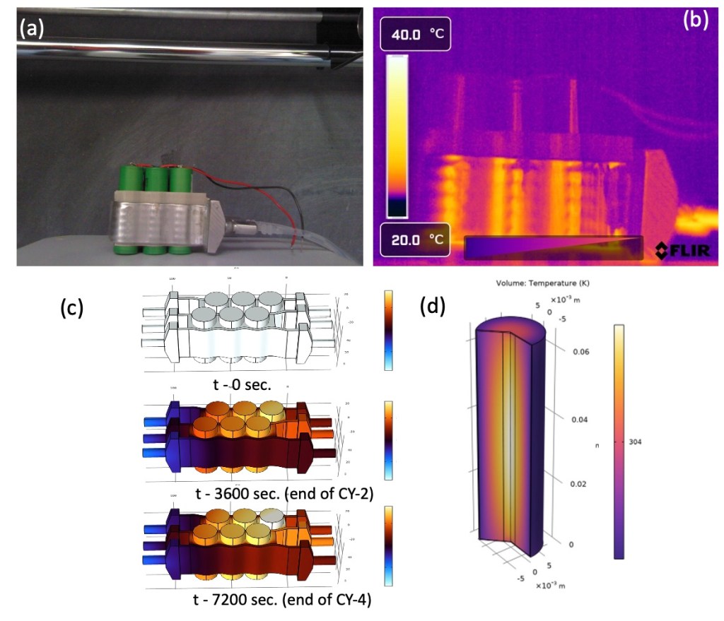 Battery thermal management systems (B-TMS) in electric vehicles (EVs) regulate temperature to maintain battery performance, longevity, and prevent thermal runaway. These systems generally use active air or liquid cooling, with thermal interface materials (TIMs) to dissipate heat, alongside sensors and control algorithms for temperature monitoring. Ideal B-TMS reduces both the maximum temperature (Tmax) and temperature variation (ΔT) across cells. Despite advances in air and liquid cooling, current B-TMS struggle to maintain uniform temperature (ΔT < 3 K) under all conditions and fully prevent thermal runaway. We are presently funded by the US Army GVSC to experimentally and theoretically investigate BN nanosheets (BNNs) for achieving high isotropic thermal conductivity. Furthermore, we are endeavoring to study phase change materials (PCMs), which absorb heat during phase transitions, to develop a hybrid system combining active cooling with PCMs to reduce Tmax, ΔT, and enhance safety.
